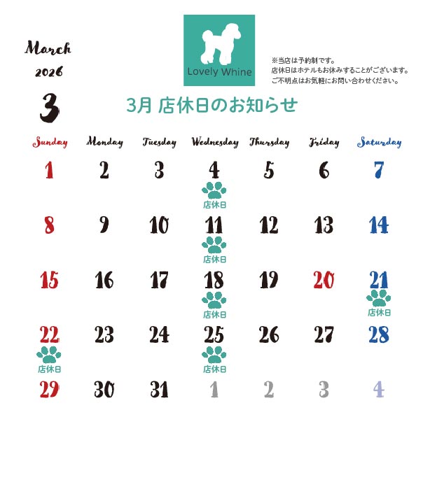3月店休日のお知らせ